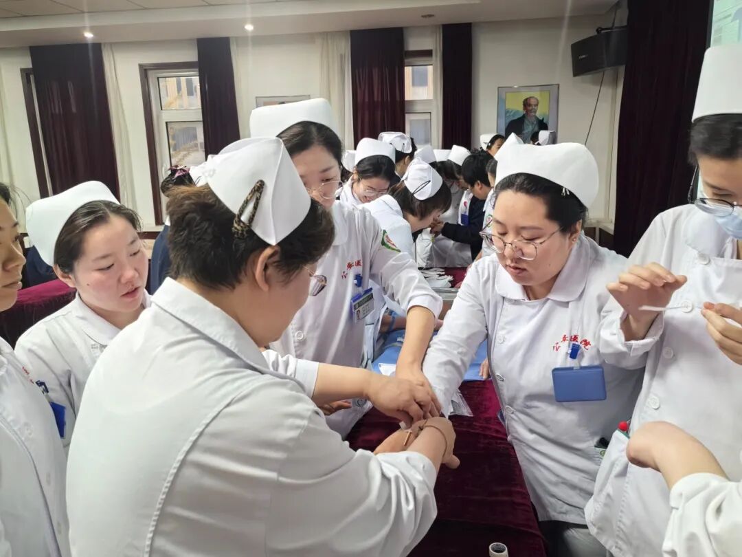 讲座结束后,进入互动实践环节。护理部副主任兼骨三科曲护士长化身“实操导师”,通过现场提问、情景模拟、分组演练等多元形式,引导护士们主动参与。针对临床中易混淆的异常判断场景,两位护士长抛出实际问题让护士现场分析作答;围绕冲封管手法、0°与180°撕除敷料手法、异常处理操作流程等关键技能,组织护士分组实操演练,对不规范动作逐一纠正,对疑问及时答疑解惑。现场讨论热烈,护士们主动分享日常工作中的困惑与心得,在交流碰撞中深化理解,在实操练习中夯实技能,真正实现“学懂、弄通、会用”。